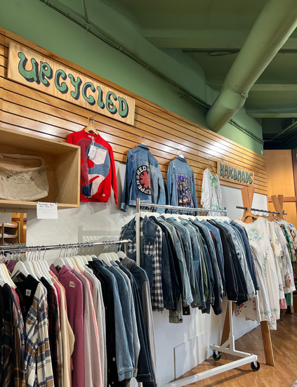 In 2023, I had a similar year in terms of continuing on with my upcycled goods but also had a lot of vintage/secondhand goods throughout the summer markets. I went back to the Burlington Mall this year but for a month in a 700sqft storefront. I collaborated with SMLeo where I sold her tote bags and prints, as well as Rebloomed who had a rack of upcycled clothing.